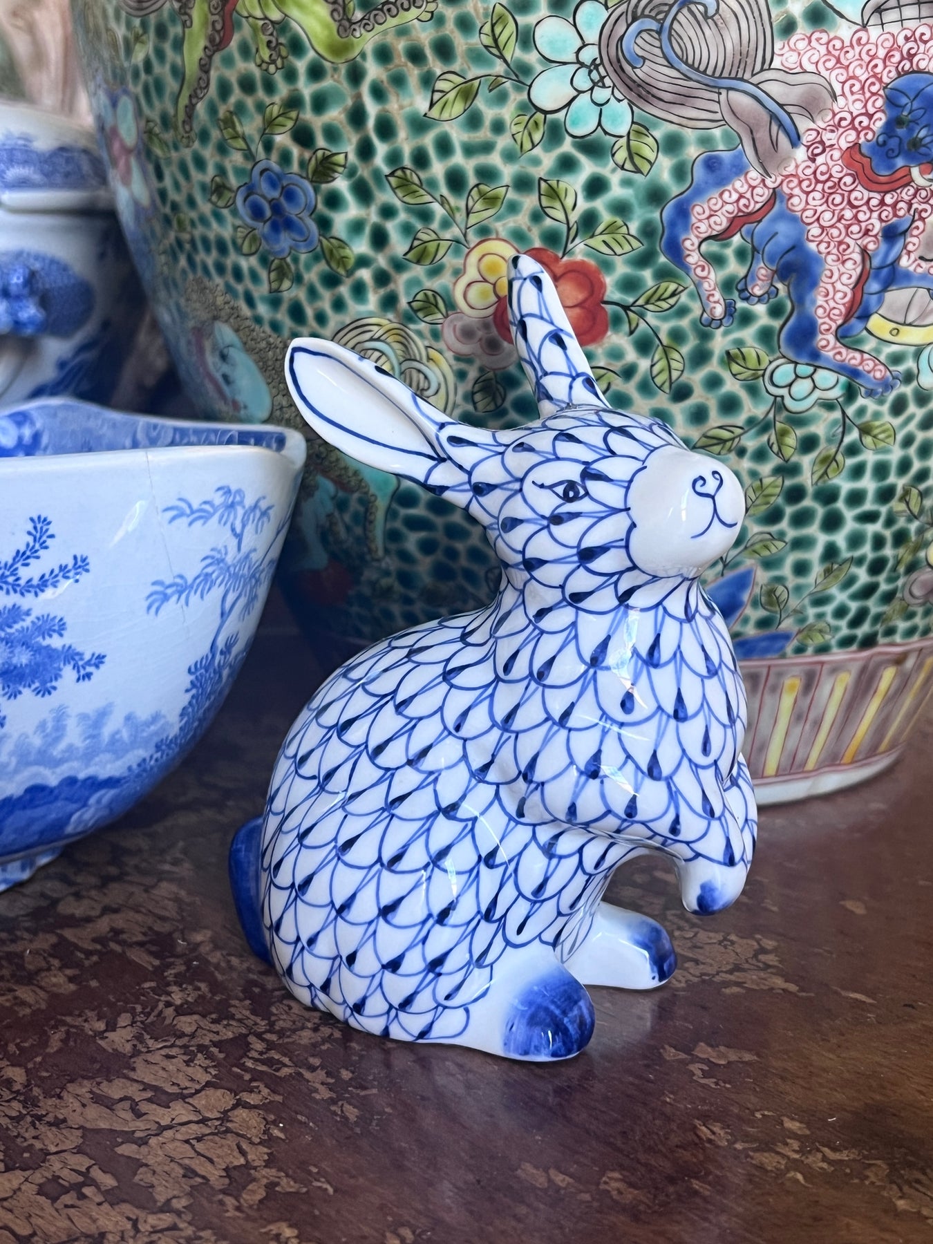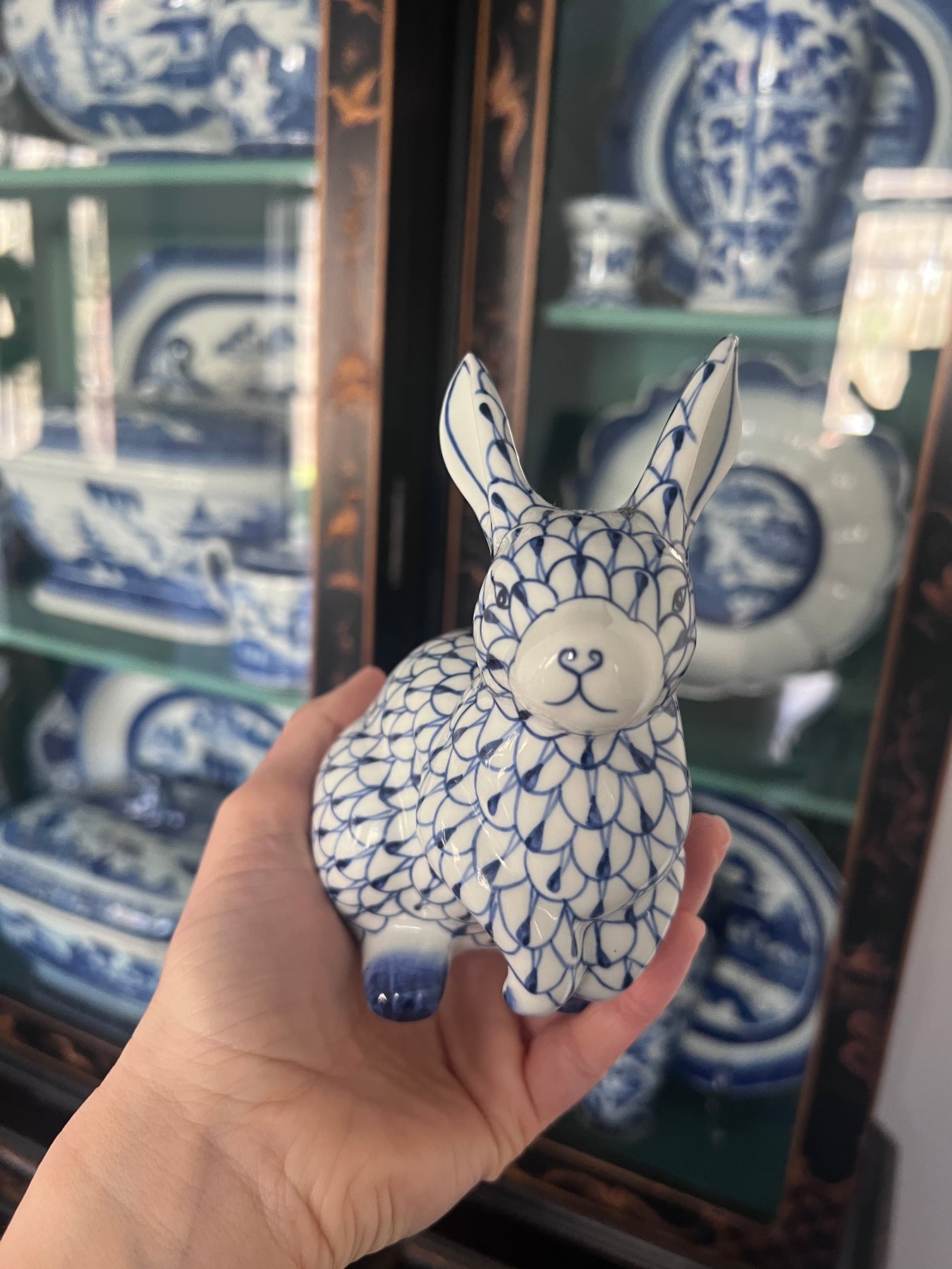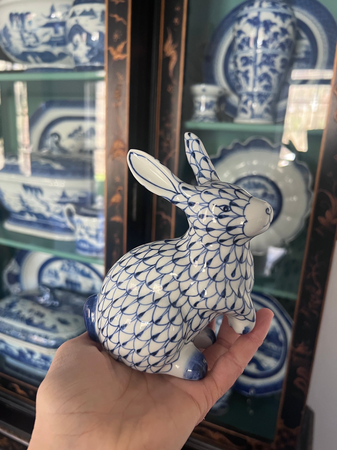 • IMPORTANT! I have been collecting these bunnies over the course of the year. The image shown here is ONE EXAMPLE - but as these are hand painted, no two are exactly the same. The fishnet may be larger or smaller, darker or lighter, etc. Please do not purchase if you are extremely particular about the exact bunny that you receive! Thank you.