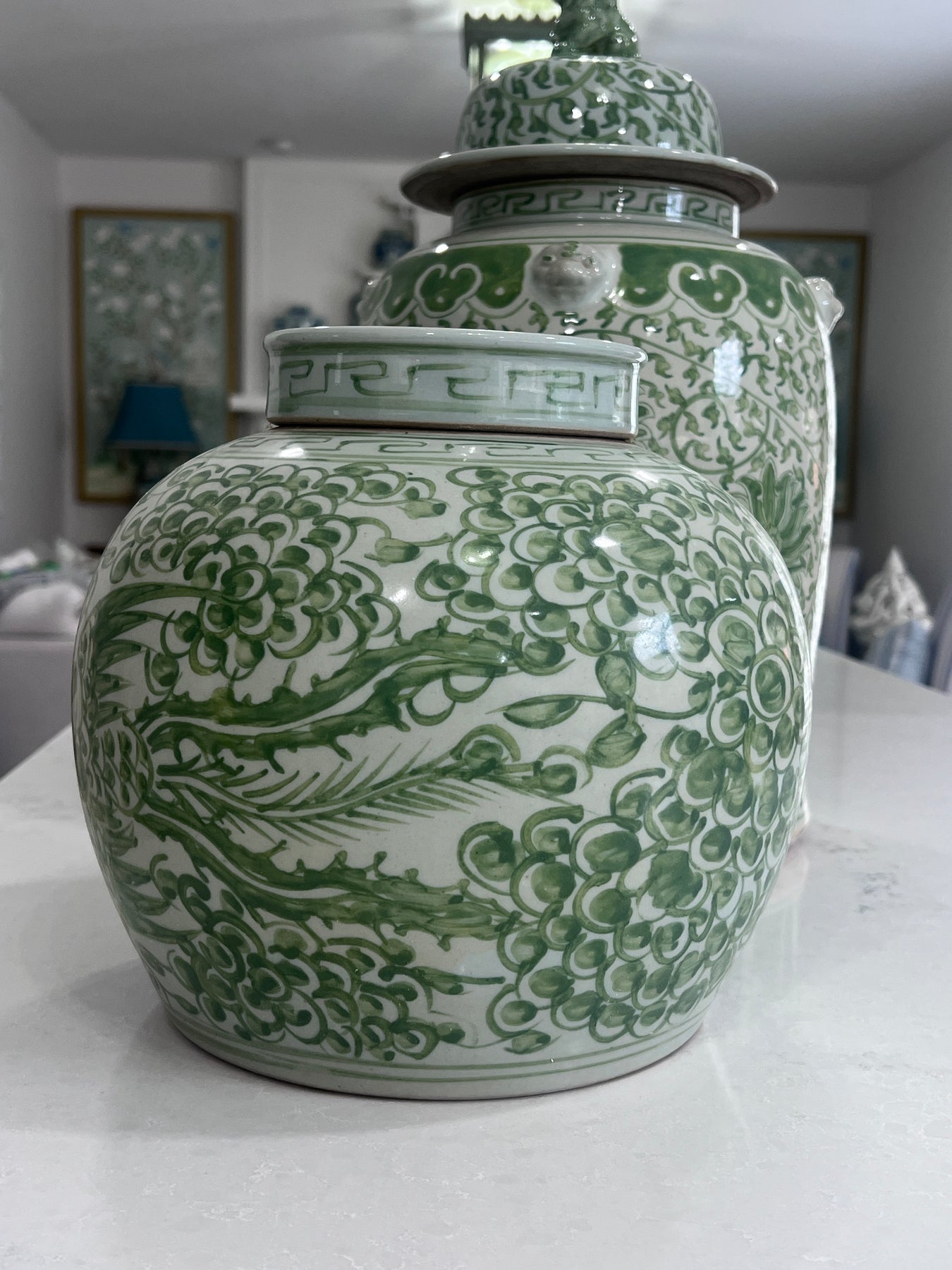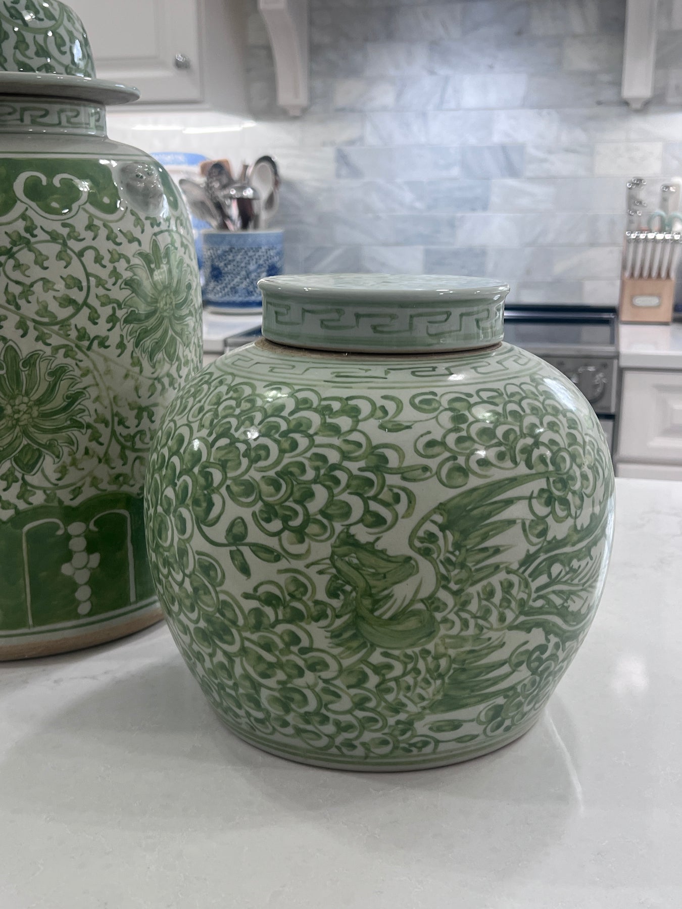 Chunky Green Chinoiserie Flower Ginger Jar