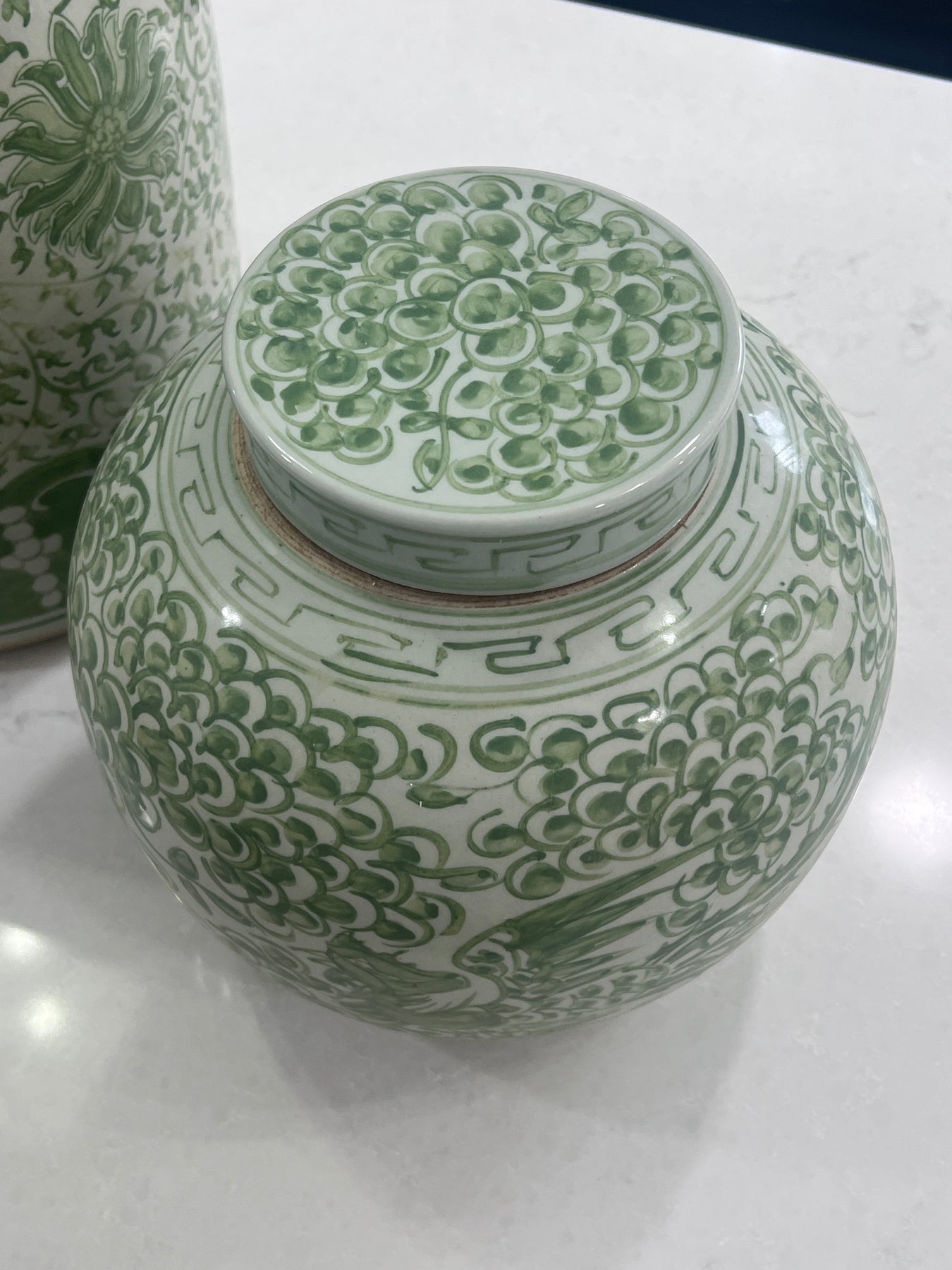 Regular price $150.00 Save $-150.00- Chunky Green Chinoiserie Flower Ginger Jar